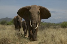 Leopards are always among the top trophies to film, and we're always concerned about getting a good leopard for the safari. Samburu, our first shooting location, can be good for leopards, and we always hope to get a leopard there -- insurance, at least, in case we fail to find one elsewhere. On this trip we were especially lucky as we found a very cooperative female on the first full day of the safari. She was lying on a fallen tree, offering wonderful shots for many minutes before leaving that perch and walking passed one of our vehicles before perching on another low snag within head-shot distance of two of our vehicles -- where she remained for multiple gigabytes worth of frames!