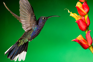 Top row, green-breasted mango, flower and background.
