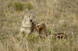 The next morning we were disappointed, as lions had moved into the birthing plains and had scattered the herds widely. We did get some great shots of small family groups drinking, and carrying off newly captured gnu calves, but all of the herds were too far off for usable shots of birthing. Towards mid-morning, however, after the lions had retreated into the shade of surrounding brush, a large herd of gnus had moved back towards the game track, and there, right next to the road, we found several gnus in the process of birthing. In great light, close, we had the best shooting opportunities we've ever had, and it was simply incredible.