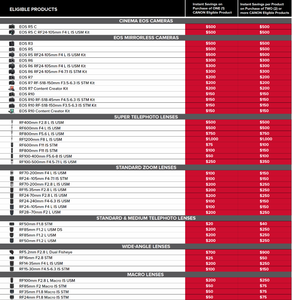 R5 Mark II $400.00 Bonus Savings on the body or kit.