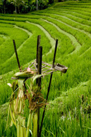 This Baya weaver was nesting in a rural area of Singapore. Males make one or a series of funnel-like nests in hopes of attracting a female. Fong Chee Wia, the president of the Singapore Nature Photo Society, generously donated his time to take me to the nest one morning, and together we fried in the morning light. Well, I did -- I sure wasn't used to the heat!