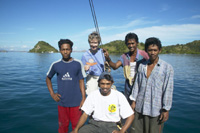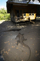 Our guide did meet us in Labuan Bajo, and within an hour we boarded our boat -- a small fishing boat with a crew of 3 -- for our four hour cruise to Komodo. The Komodo experience ended up to be the highlight of our trip -- good shooting, great food, and a great boat crew and guide. The dragons, a huge monitor lizard that may grow ten feet long, are most easily seen around the ranger station, and we were told that the shooting was limited and boring. That simply wasn't true. In the mornings, just after dawn, the Komodo dragons leave their night-time dens and waddle-shuffle back to the station where, I guess, they hope to get scraps and where wild pigs often gather. Pigs and deer are their main prey, so it made sense for the dragons to congregate where the pigs gathered.