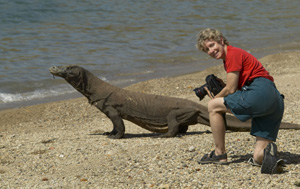 From Borneo we returned to Singapore, changed planes, and flew to Bali on our way to Komodo Island. In Bali we checked the tickets our agent had recently given us, and discovered that we only had ONE WAY tickets to Komodo. Further, our luggage allowance was 10 kilos -- about 22 pounds, and we each had 20 kilo bags of luggage and probably an equal amount of carry-on camera gear. Since we had no idea how large the plane was, we panicked, and for a second entertained just canceling the Komodo trip.