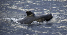 When we left anchor and headed north the weather was poor and some people got seasick and stayed in their cabins. It rained and was dreary, but at the end of the day the weather cleared somewhat and we had another bout with Dolphins – this time, long-beaked Common Dolphins, and later with a small group of Black Fish, or Pilot Whales. They swam close and although the light was getting to be past marginal we had some shooting and very good sightings.
