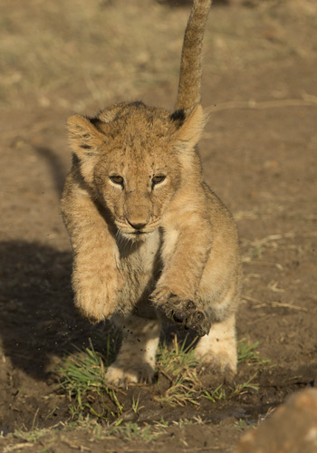 Another clear sky morning and we headed directly to the Lion cubs, hoping to get there before the tourist vans arrived. Along the way we spotted another Serval, but it was shy and ducked into thick bushes and we didn’t bother stopping, not wishing to harass it.