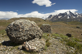 Returning to puma country, we hiked in towards the Castle, but we had only two hours before we were to meet Rod and Christina and travel in tandem with them to Lago Azul, where we hoped to film Silver Grebes. The Castle search was unproductive, although Mary found some cliffs with caves that she felt were very promising and deserving another look tomorrow.